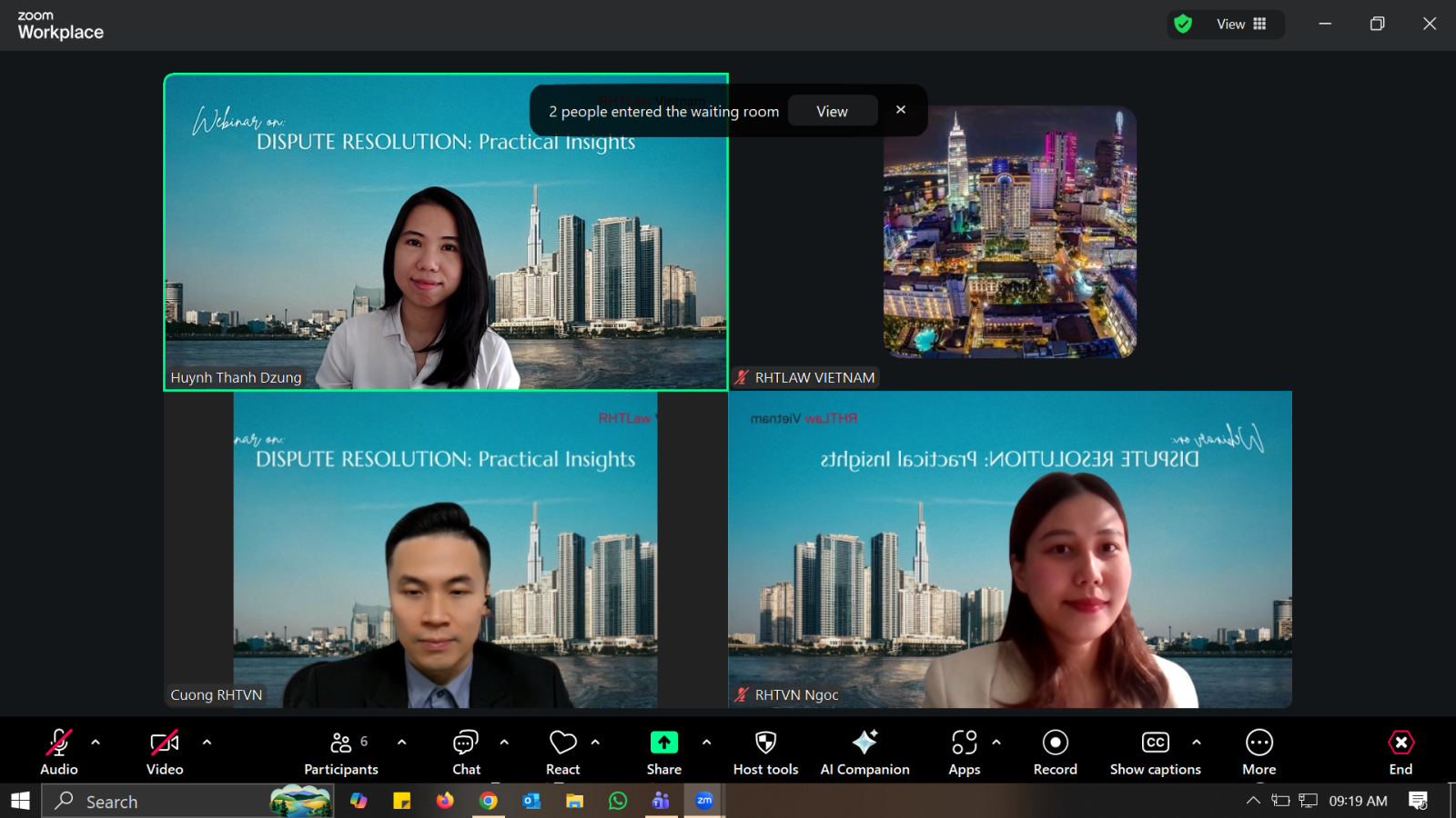 The webinar was led by Ms. Huynh Thanh Dzung and Mr. Nguyen Thanh Cuong , Partners of RHTLaw Vietnam, each bringing over 15 years of legal experience from the firm’s Ho Chi Minh City and Hanoi offices. Drawing from their extensive practice, the speakers shared valuable insights into both the legal framework and real-world application of dispute resolution in Vietnam.